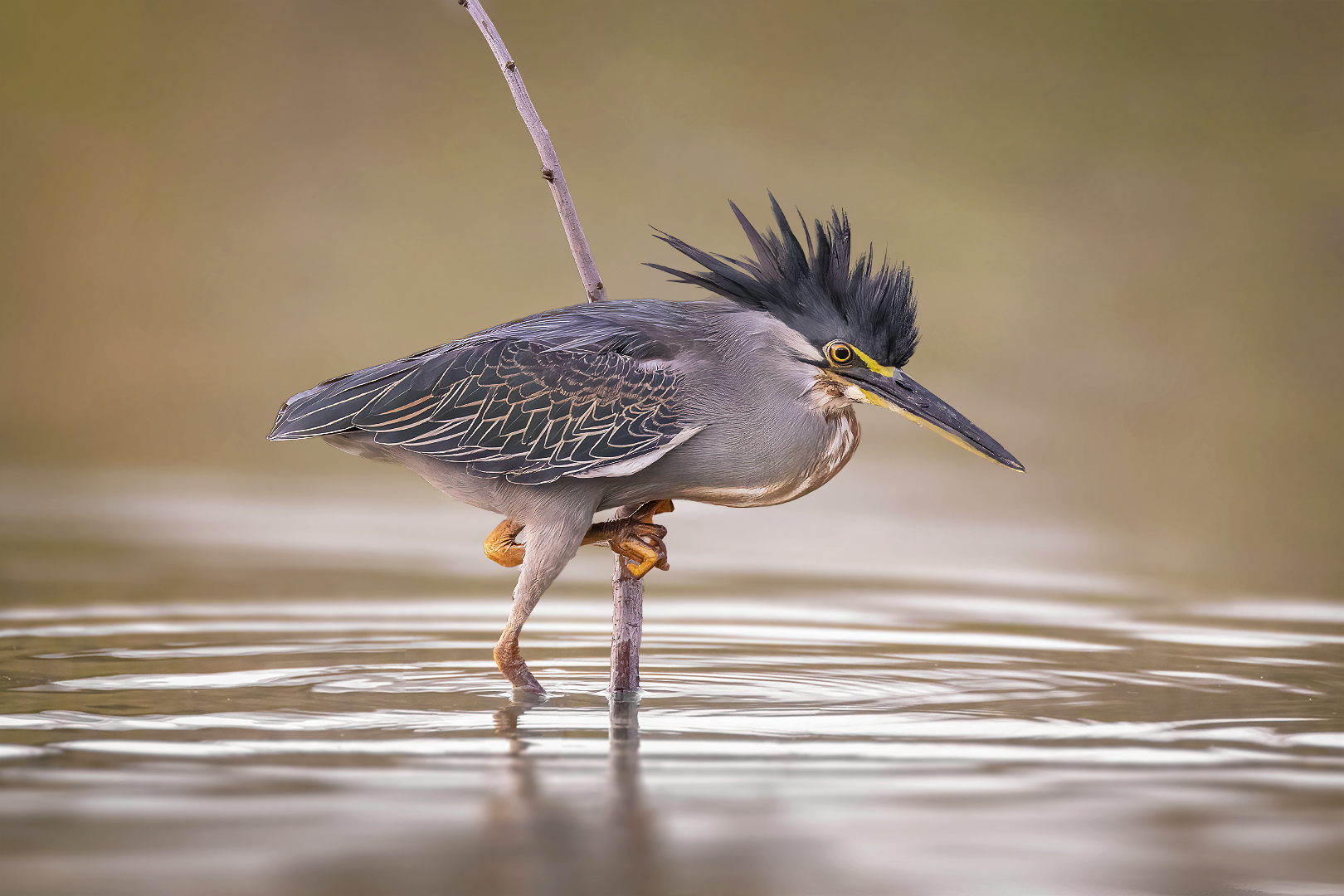 אנפה מסורטטת גדולה הולכת במים